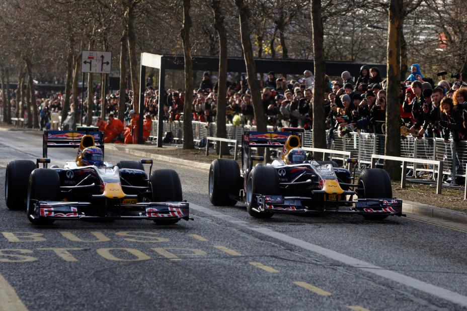Taking place in Red Bull Racing’s home city of Milton Keynes in the UK, F1 drivers Sebastian Vettel and Mark Webber wowed approximately 60,000 spectators by driving the World Championship-winning Red Bull Formula One cars along the city streets, condoned off especially for this historical event. Amongst the roar of engines and clouds of tyre smoke, Red Bull Racing Team Principal Christian Horner and Chief Technical Officer Adrian Newey were also there to meet and greet fans.