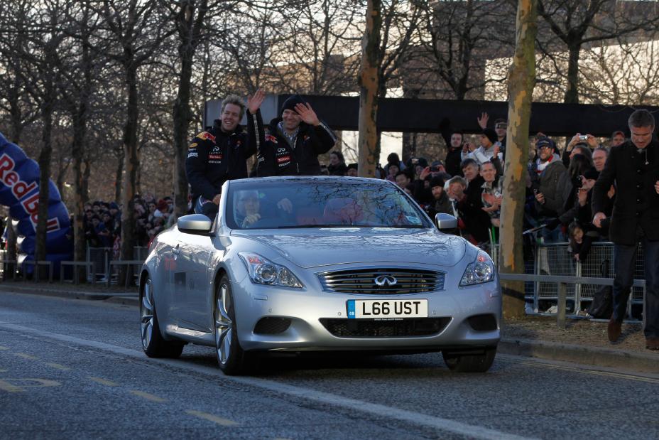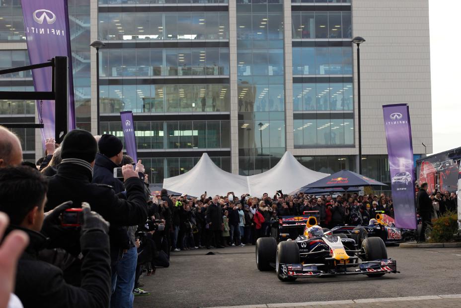 As a major partner of Red Bull Racing, INFINITI was central to the show, with both Mark Webber and Sebastian Vettel completing hero laps and waving to the crowd aboard two INFINITI G Convertibles. Each of the drivers arrived at the event in an INFINITI M35h, the world’s fastest-accelerating hybrid, whilst fans had the chance to get up close to INFINITI’s range of cars with a large product display next to the course. This display included a rare chance to see the INFINITI FX Sebastian Vettel Version concept, along with an INFINITI FX30ds specially branded in RB7 livery which was also used as the official pace car for the F1 runs.